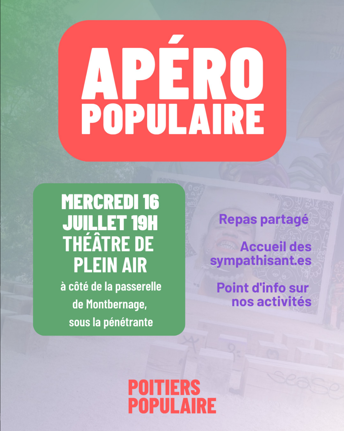 Le 7 février dernier, l’association Poitiers Populaire a été créée afin d’aller à la rencontre des habitantes et des habitants. Portée par la conviction que la gauche ne peut remporter les élections municipales qu’en répondant concrètement aux besoins et aux attentes de la population, l’association s’appuie sur une analyse attentive des avancées et des limites des politiques menées par la municipalité actuelle, tout en tirant les enseignements des impasses rencontrées par la précédente équipe municipale. Dès sa création, Poitiers Populaire s’est tournée vers l’ensemble des forces de gauche pour engager un dialogue autour d’un projet commun, résolument en rupture avec les politiques antisociales, antiécologiques et autoritaires qui se développent en France et à l’échelle internationale.