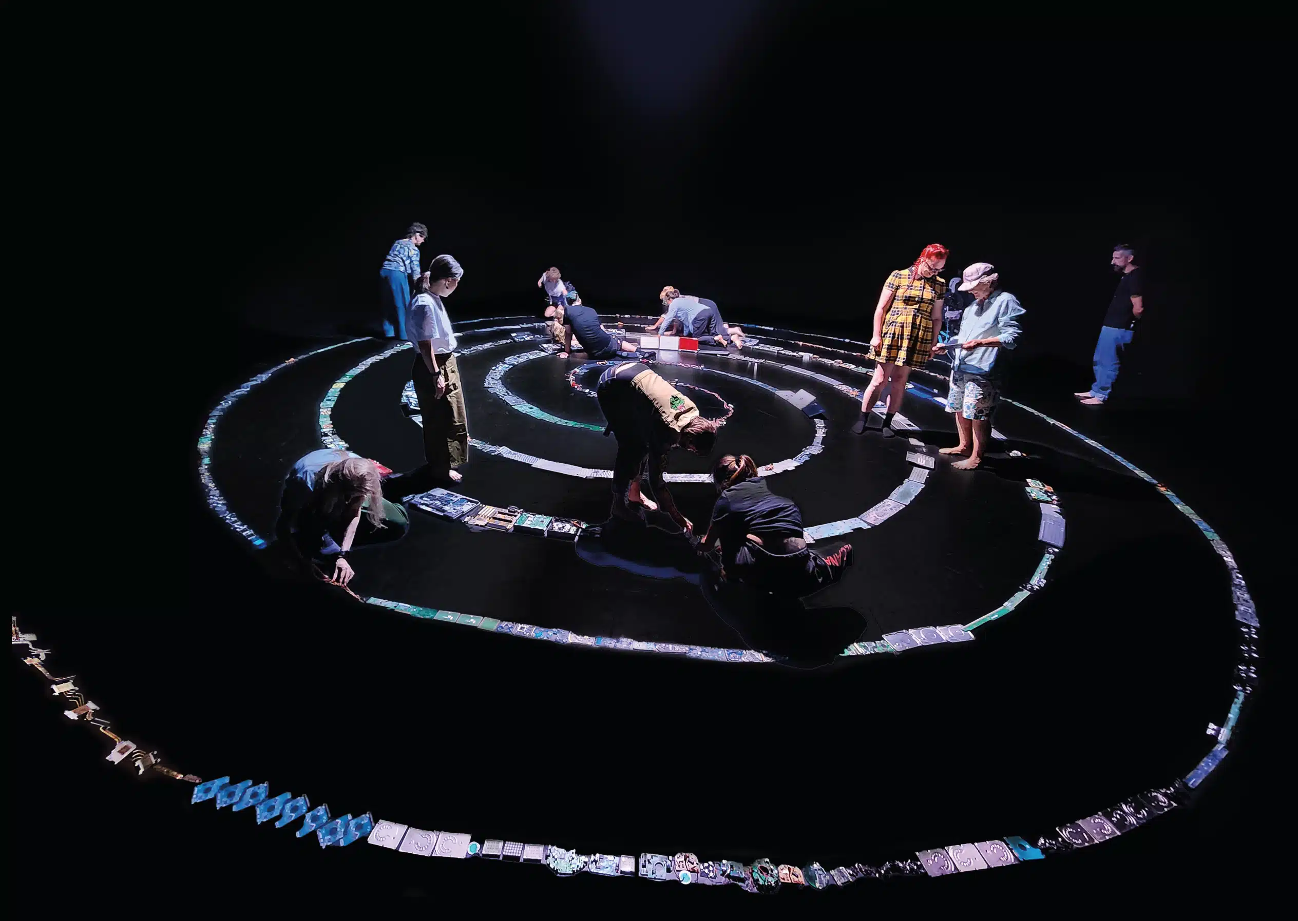 Cette installation sensibilise au recyclage, à la durabilité et aux coûts humains et environnementaux impliqués dans la fabrication de nos appareils électroniques.