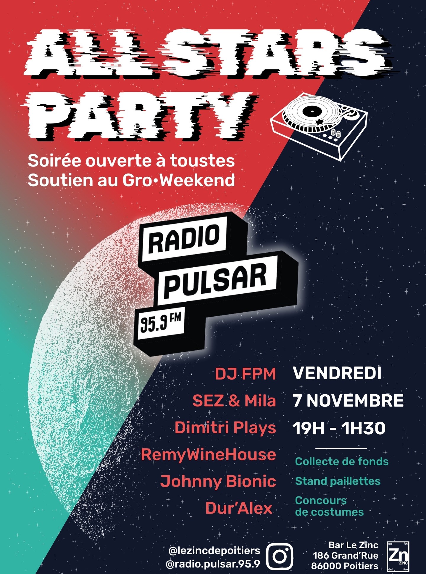 Rendez-vous le vendredi 7 novembre, de 19h à 1h au bar @lezincdepoitiers pour fêter l’automne non-monotone en mode intergalactique !