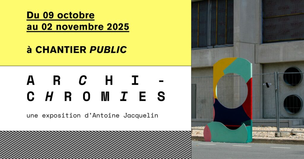 Exposition d’Antoine Jacquelin du 09 octobre au 02 novembre 2025 Ouvert les mer. ven. sam. dim. de 14h Ă 18h ou sur rdv via chantierpublic.prod@gmail.com La vocation d’Archi-Chromies est d’être une rencontre entre le paysage et les usager·es d’un territoire. L’artiste y explore l’inventivitĂ© des lieux avant d’y dĂ©poser une oeuvre, une intention poĂ©tique qui […]