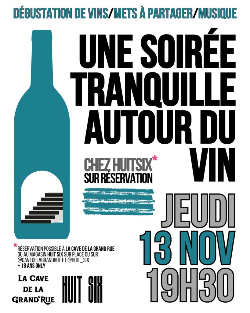 Afin de rompre un peu avec les standards de la dégustation de vin pompeuse et ennuyante, @cavedelagrandrue et @huit_six vous proposent de passer une soirée plus détente mais pas moins enrichissante sur le thème du vin. Chaque personne se verra proposer 6 verres de vins ainsi qu’un buffet de mets en accompagnements ! Votre sommelière, […]